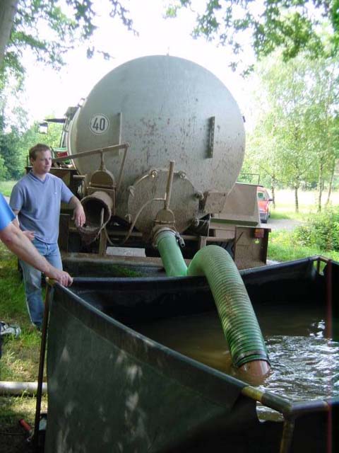 Zusätzlich zum Tanklöschfahrzeug der Feuerwehr kam ein Tankanhänger eines Eppelborner Landwirtes zum Einsatz.