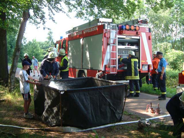 Am 14. Juni 2003 wurde der Löschbezirk Eppelborn zu einem Einsatz im Bereich "Steinrausche" alarmiert. Bei Waldarbeiten war durch Unachtsamkeit ein Feuer ausgebrochen, so die angenommene Einsatzmeldung der diesjährigen Waldbrandübung. Der Brand erstreckte sich auf eine Fläche von ca. 500 qm nahe dem Waldwirtschaftsweg in Richtung Ortsteil Hierscheid.