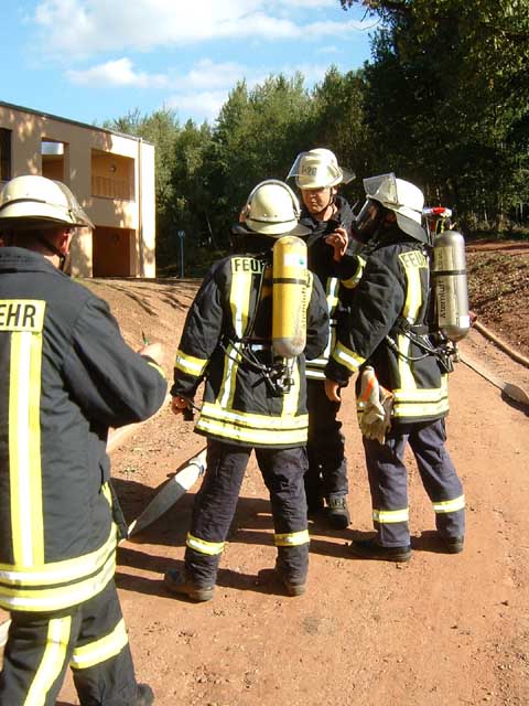 Unter der Leitung von Löschbezirksführer Hans Werner Ruschel aus Habach, der auch für die Planung der Übung verantwortlich war, mussten neben der Brandbekämpfung auch vermisste Personen unter Atemschutz in dem stark verqualmten Gebäude gesucht und gerettet werden.