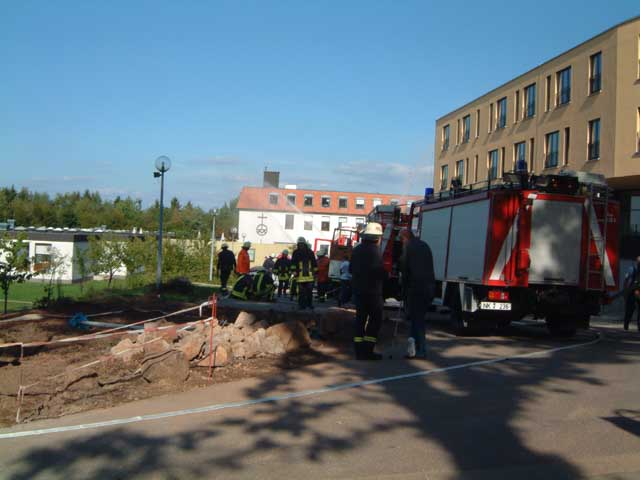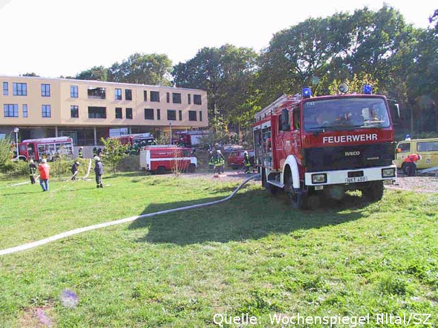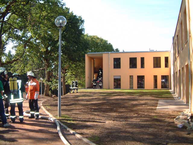 Gegen 16 Uhr wurden nacheinander alle Löschbezirke der Gemeinde zu einem angenommenen Großbrand auf dem Gelände des Psychiatrischen Pflegeheimes alarmiert.