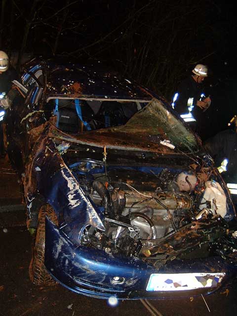 Während sich ein verletzter Insasse bereits vor Ankunft der Rettungskräfte selbst befreien konnte, wurde eine junge Frau in dem Fahrzeug eingeklemmt und musste von der Feuerwehr unter Einsatz von hydraulischen Rettungsgeräten befreit werden.