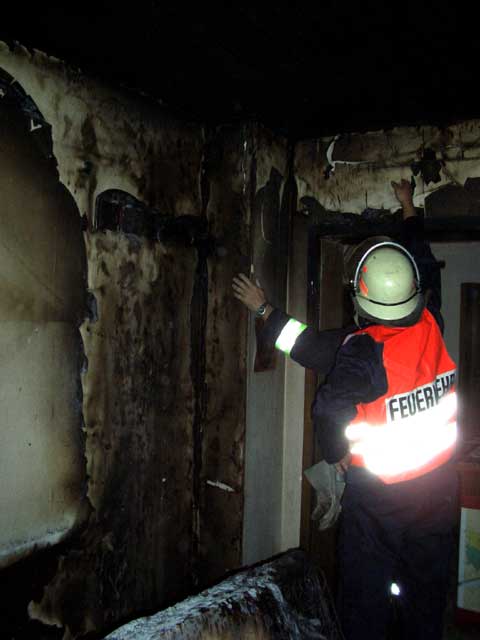 Die Feuerwehr lüftete das Gebäude mit einem Hochdrucklüfter und suchte die Wände und Decken nach versteckten Brandnestern ab. Größerer Schaden konnte durch das schnelle Eingreifen verhindert werden.