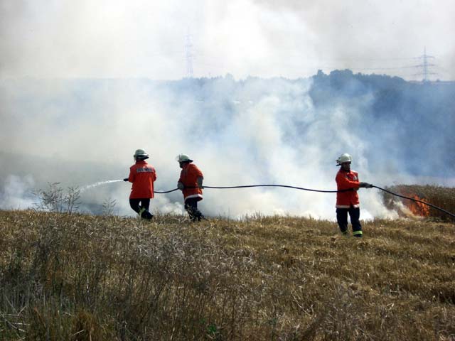 Zu einem Großbrand wurden die Löschbezirke Eppelborn und Habach am Nachmittag des 03. August 2004 alarmiert. Als nach dem Eintreffen an der Einsatzstelle das Ausmaß des Brandes bekannt wurde, entschloß sich der Einsatzleiter dazu, zusätzlich den Löschbezirk Wiesbach alarmieren zu lassen.