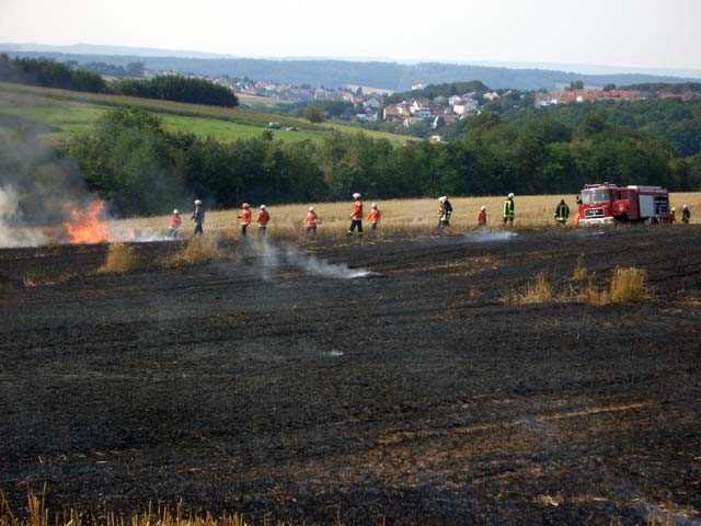 Da parallel zum Notruf im Landkreis Neunkirchen ebenfalls die Leitstelle in Saarlouis über den Brand informiert wurde, befanden sich die Löschbezirke Lebach, Thalexweiler, Landsweiler und Niedersaubach aus der Stadt Lebach auf Anfahrt. Gemeinsam konnte der Großbrand nach zwei Stunden erfolgreich bekämpft werden. Ein Übergreifen auf den direkt angrenzenden Wald konnte erfolgreich verhindert werden.