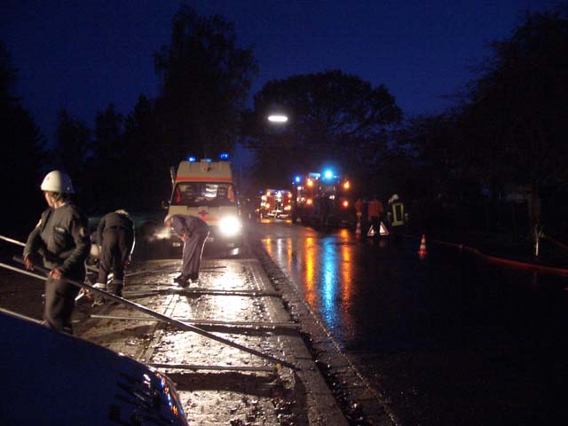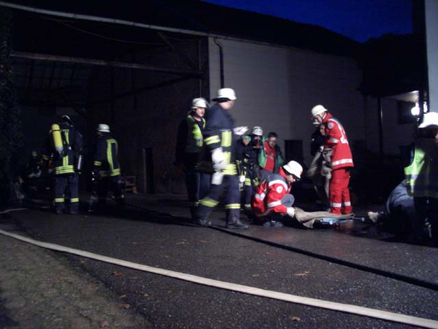 Am 30. Oktober 2004 fand eine Alarmübung im Löschbezirk Wiesbach statt. Um 18:30 Uhr wurden die Einsatzkräfte überraschend über Funkmeldeempfänger alarmiert. Angenommen wurde ein Brand in der Scheune eines landwirtschaftlichen Anwesens in der Jägerbergstraße, mehrere Personen werden in dem betroffenen Gebäude vermisst. Die Flammen drohen, auf benachbarte Gebäude überzuspringen. Bereits nach kurzer Zeit sind die Einsatzkräfte der Feuerwehr und des DRK-Ortsvereins Wiesbach vor Ort. Aufgrund der großen Anzahl der zu erwartenden Verletzten und dem Bedarf an Atemschutzgeräteträgern entschließt sich der Einsatzleiter Günter Neu, den Löschbezirk Humes und den DRK-Ortsverein Humes zur Unterstützung nachzualarmieren. Gemeinsam verlegen die Einsatzkräfte mehrere Schlauchleitungen zur Brandbekämpfung zu den betroffenen Gebäudeteilen. Die eingeschlossenen Personen werden unter Einsatz von Atemschutzgeräten gerettet und den Helfern des DRK übergeben. Diese haben bereits eine Verletzensammelstelle eingerichtet und übernehmen die weitere Versorgung. Nach gut einer Stunde waren alle Personen gerettet und die Übung beendet. Auch der Wehrführer der Gemeinde, Hermann Josef Recktenwald, überzeugte sich vor Ort von der Arbeit der Einsatzkräfte und zeigte sich zufrieden über die Zusammenarbeit der beiden Löschbezirke und des DRK. Er kündigte an, dass die gemeinsamen Übungen der Löschbezirke untereinander in Zukunft zum regelmäßigen Ausbildungsbetrieb gehören werden.