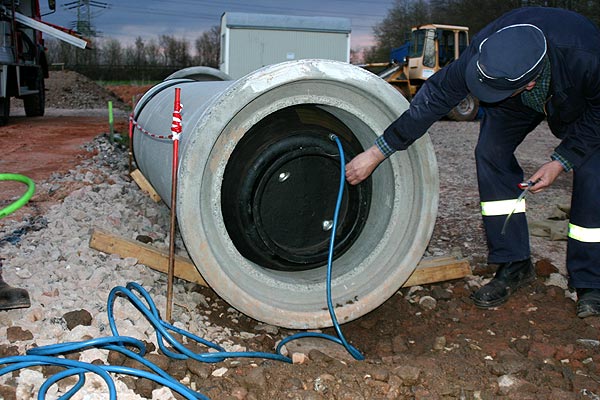 Gemeinsam übten die Löschbezirke Eppelborn und Wiesbach am Dienstag den Einsatz von technischem Gerät auf dem Baugelände zum neuen Gewerbegebiet A1. An verschiedenen Szenarien konnte die Einsatzkräfte dabei den Einsatz unterschiedlicher Geräte zur technischen Hilfeleistung trainieren. Die Anwendung von Kanaldichtkissen, mit denen die Ausbreitung von gefährlichen Flüssigkeiten in die Kanalisation verhindert werden können, wurde an einem Betonrohr gezeigt. Die Kissen werden nach dem Einsetzen mit Pressluft gefüllt und verschließen dabei Öffnungen bis zum einem Durchmesser von 120 Zentimetern. An einer anderen Übungsstelle kamen hydraulische Stockwinden zum Einsatz. Ein Baufahrzeug musste angehoben werden, um eine darunter eingeklemmte Person zu befreien. Ein weiterer Verletzter musste unter umluftunabhängigem Atemschutz aus einem Schacht befreit werden. Dabei wurde auch der Einsatz der Motorsäge geübt, da zuerst ein Baumstamm, der vor dem Einstieg lag, entfernt werden musste. Besonders für die Einsatzkräfte des Löschbezirks Wiesbach war diese Übung lehrreich, da die Geräte zur technischen Hilfeleistung sonst nicht zur Verfügung stehen, so der Wiesbacher Löschbezirksführer Günter Neu. Weitere Übungen dieser Art, die die Zusammenarbeit der Löschbezirke untereinander fördern, werden im Laufe des Jahres noch folgen.