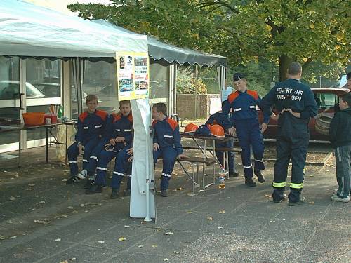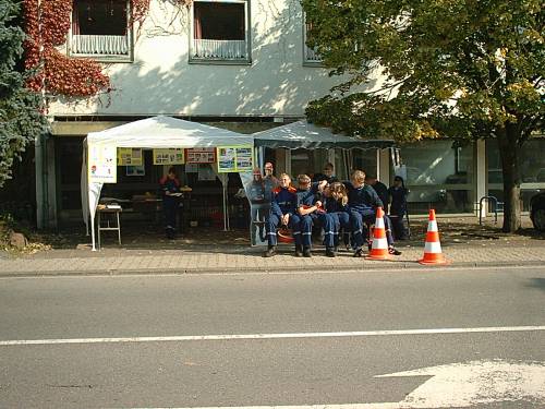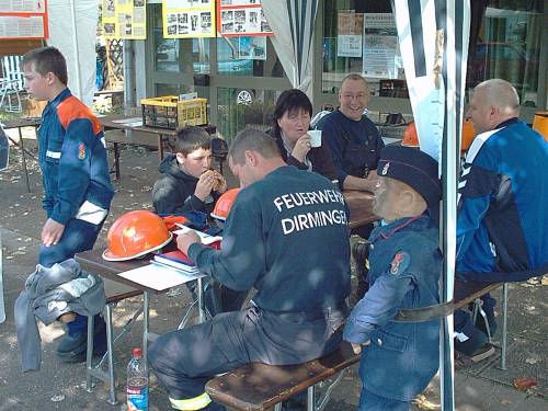 Seit 40 Jahren besteht die Jugendfeuerwehr Dirmingen. Aus diesem Grund präsentierten sich die jugendlichen Feuerwehrmänner mit Ihrem Jugendwart Guido Kuhn, sowie den Helfern Stephan Blum und Hans-Werner Guthörl am Samstag, dem 24.09.05 morgens zwischen 10 – 12 Uhr, in der Dorfmitte vor dem Gemeindehaus. Ein Informationsstand mit Bildwänden wurde errichtet und Besucher konnten sich über die Jugendfeuerwehr informieren. Kaffee, Getränke und Rostwürste wurden gegen geringes Geld an die Besucher verkauft. Das Wetter konnte besser nicht sein und so hatten auch die Jugendlichen unserer Feuerwehr sichtlich Ihren Spaß an der Aktion. Die Mannschaft der Jugendfeuerwehr Dirmingen zählt zur Zeit acht Mitglieder, zwei davon sind Mädchen. In die Jugendfeuerwehr kann eintreten, wer mindestens 10 Jahre alt ist und in der Gemeinde wohnt. Neben der feuerwehrtechnischen Ausbildung, die übrigens viel Spaß macht, werden noch viele anderen Aktivitäten durchgeführt. Hier zu nennen wären z.B. Bastelabende, Schwimmbadbesuche und Nachtwanderungen. Auch beteiligt sich die Jugendfeuerwehr an regionalen Aktionen. So wurden vor einiger Zeit auch schon mal Nistkästen für Vögel gebaut und aufgehängt bzw. verkauft. Also bei uns ist immer was los. Der Weg zu uns führt über unseren Jugendwart Guido Kuhn Tel. 06827-2174. Er informiert euch über alles weitere. Gerne könnt Ihr aber auch mal bei einer Übung vorbeischauen. Den Übungsplan findet Ihr hier auf den Seiten der Jugendfeuerwehr. Der Weg zur Jugendfeuerwehr ist in allen Ortsteilen gleich. Also kurz informiert und los kann es gehen. [b]Jugendfeuerwehr – komm mach mit.[/b]