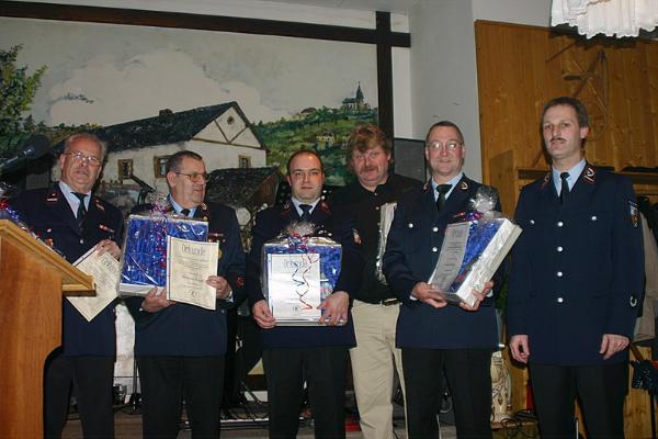 Weitere Redner waren Wehrführer Hermann-Josef Recktenwald und Rudi Hell in seiner Funktion als Ortsvorsteher. Während Recktenwald die Arbeit der Feuerwehr in Ihrer Funktion als freiwillige, für den Bürger engagierte, Organisation hervorhob, bedankte und lobte Rudi Hell das starke Mitwirken der Dirminger Wehrleute am kulturellen Geschehen in der kleinen Illtalgemeinde. Nach den Ansprachen konnte Bürgermeister Lutz noch verschiedene Ehrungen und Beförderungen vornehmen, was aber bereits schon in einer Feierstunde im Big Eppel durchgeführt wurde.
