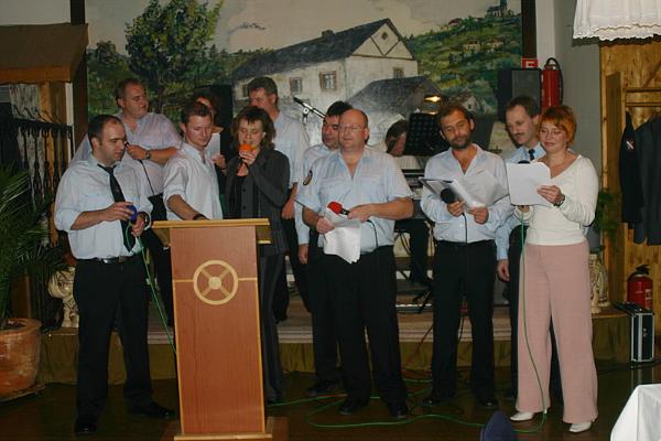 Nach der Tombola stimmte unser Kassierer Stefan Schaefer ein Lied der Gruppe Rastlos mit dem Titel "Im Dirminger Dörfche" an. Alle erhoben sich von den Plätzen und es wurde geschunkelt und natürlich auch mitgesungen. Sieht man den Abend im nach hinein, so kann man nur sagen, dass er absolut gelungen und eine Spitzenklasse an Unterhaltung war. Zu danken sei hier am Schluss noch allen Akteuren des Abends für die guten Einlagen, allen Gästen für Ihr Kommen und Ihre fröhliche Stimmung, sowie den Gewerbetreibenden für die zur Verfügung gestellten Tombolapreise. Herzlichen Dank.