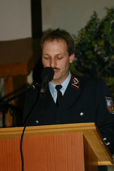 Nach der Begrüßungsrede von Bernd Detzler ergriff der Chef der Wehr, Bürgermeister Fritz-Hermann Lutz, das Wort. Mit sichtlichem Stolz stellte er fest, dass der Löschbezirk Dirmingen ein sehr aktiver und gefestigter Löschbezirk sei. Nicht nur, dass er viele Übungs- und Ausbildungsstunden durchführt, sondern auch ein besonders starkes Engagement für die kulturellen Dinge in Dirmingen zeigt. Auch sei er in jedem Jahr erstaunt darüber, wieviele Gäste und Mitglieder doch am Familienabend teilnehmen würden.