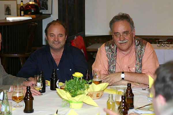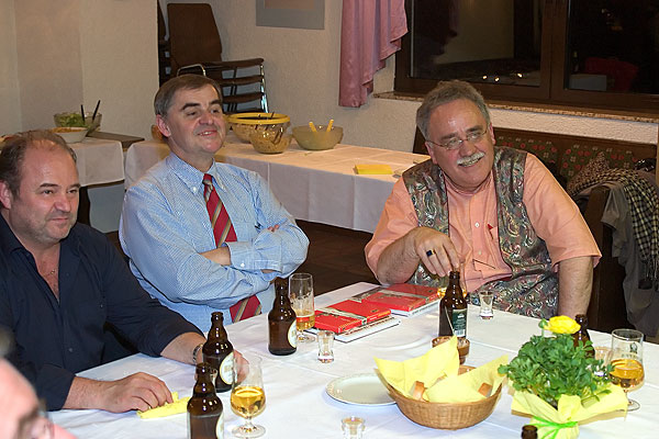 Auch Landesbrandinspekteur Bernd Becker sowie der Vorsitzende des Landesfeuerwehrverbandes Saarland, Detlef Köberling waren zum Auftakt der Veranstaltung gekommen. Und dass im Saarland viele Wege etwas kürzer sind, bewies auch ein ein besonderer Gast, der sich für den Abend angesagt hatte: Ministerpräsident Peter Müller, selbst ein "Eppelborner Bub", hieß die Gäste persönlich willkommen. Um dem Besuch auch eine besondere kulinarische Note zu geben, hatte das Küchenteam der Feuerwehr ein echt saarländisches Büffet mit Schwenk- und Rollbraten zubereitet.