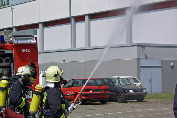 An diesem sonnigen Samstag quoll dichter Rauch aus dem Trümmerhaus auf dem Gelände der Landesfeuerwehrschule.…