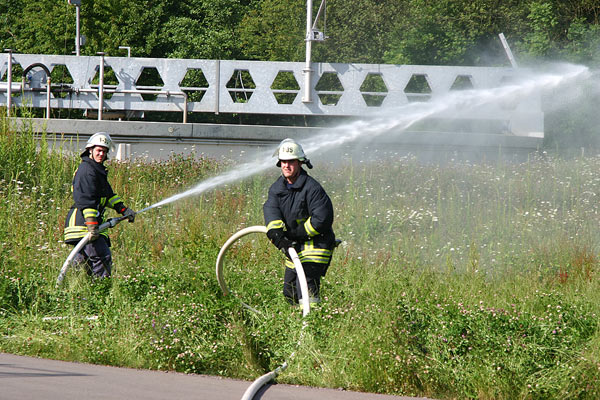 Um bei all diesen Gefahrenlagen effektive Hilfe leisten zu können, bedarf es detaillierter Kenntnisse der Anlage und der dort vorhandenen Gefahren. Deshalb fand nun am Samstag, den 10. Juni 2006 eine gemeinsame Übung der Löschbezirke Bubach-Calmesweiler und Eppelborn auf dem Gelände der Kläranlage statt.