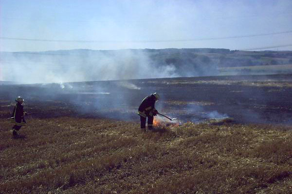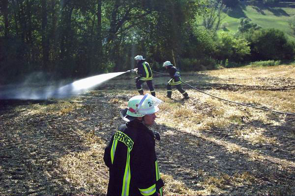 Gemeinsam mit den Einsatzkräften der Feuerwehren aus Lebach konnte der Brand schnell gelöscht werden. Das drei bis vier Hektar große Stoppelfeld brannte vollständig nieder.