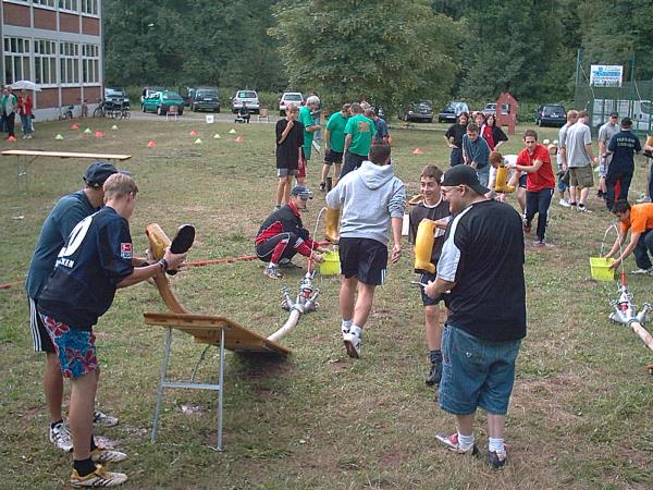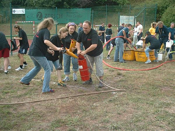So begann der Wettkampf und jedes Team gab sein Bestes. Es gab viel zu lachen und es machte den Teilnehmern und den Zuschauern sichtlich Spaß. Zugelassen zum Turnier waren Männer- und Frauenmannschaften, aber auch gemischte Gruppen konnten teilnehmen. Lediglich aktive Feuerwehrleute durften nicht teilnehmen. Folgende Mannschaften waren dabei: [list] [*]Jippy Jabbo´s [*]Datt Schwenkhaus [*]Die Bause [*]RK-Illtal [*]Kulturverein [*]B-Schlauch Bienen [*]Wunderföne Fussballer [*]Firma Löffler [*]Die Handballer [*]Die Wähleblowe [/list] Eine Mannschaft bestand aus 6 Personen und es wurden nachfolgende Disziplinen nacheinander abgearbeitet: [list] [*]Flinke Rolle [*]Wasserball [*]Lange Leitung [*]Drilles [*]Voller Schlauch [*]Fliegende Säcke [/list] Gegen 20 Uhr wurde durch den Löschbezirksführer Bernd Detzler die Siegerehrung durchgeführt. Alle Teilnehmer waren sich einig, dass es eine sehr gute Veranstaltung war und regten an, diese im nächsten Jahr wieder mit in´s Programm zu nehmen. Der Löschbezirk Dirmingen bedankt sich bei allen Teilnehmern, sowie bei den zahlreichen Zuschauern und Gästen.