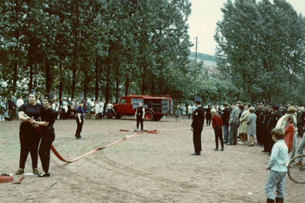 Anlässlich des 60 jährigen Bestehens der Freiwilligen Feuerwehr Dirmingen, wurde am 01. Februar 1970, auch eine Frauenfeuerwehr gegründet, die aber nach Außen hin nur übungsmäßig in Erscheinung getreten ist. Ihr erste öffentliche Übung hatten die Damen der Feuerwehr aus Dirmingen am Kreisfeuerwehrtag, der 1970 in Dirmingen statt fand. Es wurde auf dem Marktplatz in Dirmingen eine Angriffsübung auf ein brennendes Häuschen durchgeführt. Die Übung war ein Erfolg und die Damen der Feuerwehr Dirmingen erhielten Applaus und auch die Presse war vor Ort um später davon zu berichten. Der erste Ausbilder der Frauenfeuerwehr war Löschmeister Alfons Groß, Ursula Heintz leitete die Frauengruppe. Später übernahm Gotthard Detzler die Ausbildung und Irene Dörr die Leitung. In den späteren Jahren löste sich die Frauenfeuerwehr Dirmingen wieder auf, die Erinnerungen an sie sind aber geblieben. Es dauerte nun über 20 Jahre bis die ersten Frauen, offiziell mit allen Rechten und Pflichten, in die Feuerwehr aufgenommen werden durften. Heute gehören zum Gesamtbild der Freiwilligen Feuerwehren auch viele Frauen, die genau wie Ihre männlichen Kollegen, den Dienst für den Nächsten freiwillig und engagiert tun. Wenn auch die damalige Frauenfeuerwehr in Dirmingen nur zu Repräsentationszecken gegründet wurde, so kann man in Ihnen den Denkanstoß an die Politiker dieser Zeit sehen, Frauen in der Feuerwehr als aktive Mitglieder zuzulassen.