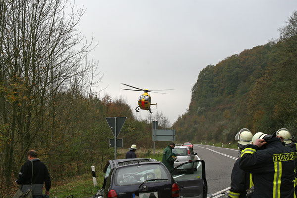 In den Mittagsstunden des 05. November geriet eine von der Autobahn abfahrende junge Frau mit ihrem Opel Corsa aus noch ungeklärter Ursache auf die Gegenfahrbahn der Ausfahrt und kollidierte dabei frontal mit einem in Richtung Trier auffahrenden Mazda. Während sich die beiden Insassen des Mazda verletzt aus ihrem Fahrzeug befreien können, wird die junge Frau in ihrem Fahrzeug mit schweren Verletzungen eingeklemmt.