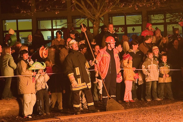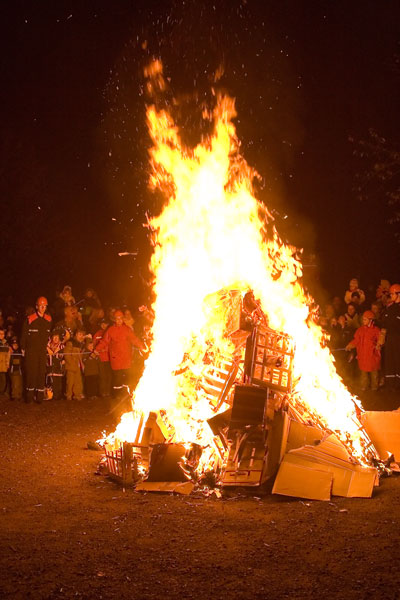 Pünktlich setzte sich am 10. November 2006 der Martinszug von der Pfarrkirche St. Sebastian aus Richtung Grundschule in Bewegung. Und während die vielen Eppelborner Kinder gemeinsam mit ihren Eltern dem heiligen Martin auf seinem Pferd folgten, standen 12 Jungen und Mädchen der Eppelborner Jugendfeuerwehr schon auf dem Schulhof der Sebastiansschule bereit, um wie in jedem Jahr das große Martinsfeuer zu entzünden. Gemeinsam mit ihren Jugendbetreuern hatten die Jugendlichen den großen Berg aus Holzkisten vorbereitet, und auf das Zeichen von Pastor Matthias Marx konnte es losgehen. Gebannt schauten die Kinder in die Flammen des Martinsfeuers und sangen gemeinsam Lieder. Dann gab es Martinsbrezeln und heisse Getränke für alle. Die Jungen und Mädchen der Jugendfeuerwehr im Löschbezirk Eppelborn beteiligen sich schon seit vielen Jahren tatkräftig am Martinsumzug. Sie bauen das Feuer auf, entzünden es in der Martinsnacht und sorgen dafür, dass der Schulhof wieder in ordentlichem Zustand verlassen wird.