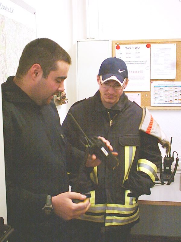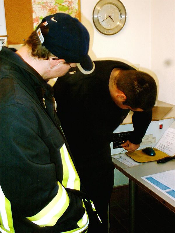 Im zweiten Teil der Übung wurden die Geräte in der Praxis in den Fahrzeugen und im Funkraum erklärt und vorgestellt. Dabei gingen Nico Eberhardt und Andreas Guthörl auf die Besonderheiten der einzelnen Geräte ein und konnten so den Wehrleuten einiges an Wissen vermitteln.