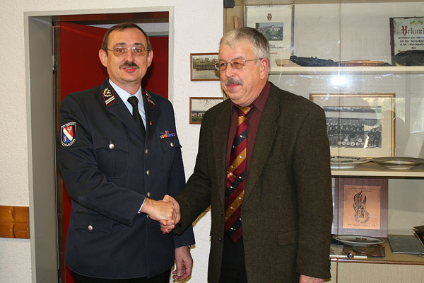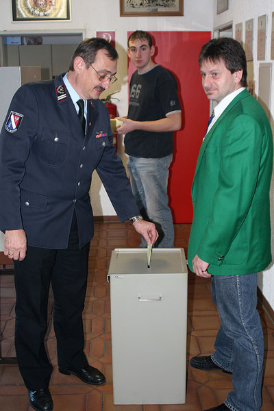 Bevor er die Versammlung um Vorschläge zur Wahl bat, dankte er noch einmal dem bisherigen Amtinshaber Felix Becker und seinem Stellvertreter Günter Klesen für das Engagement und ihre Arbeit im Löschbezirk. Besonders Becker hat in seiner bisher 18jährigen Amtszeit den Löschbezirk Eppelborn geprägt. Er wurde von der Versammlung erneut zur Wahl vorgeschlagen, Gegenkandidaten gab es keine. Somit wurde er als einziger Kandidat mit 40 Ja- zu 12 Nein-Stimmen zum neuen Löschbezirksführer gewählt.