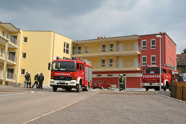 Feuerwehr übt an neuer Wohnanlage "Am alten Kino"