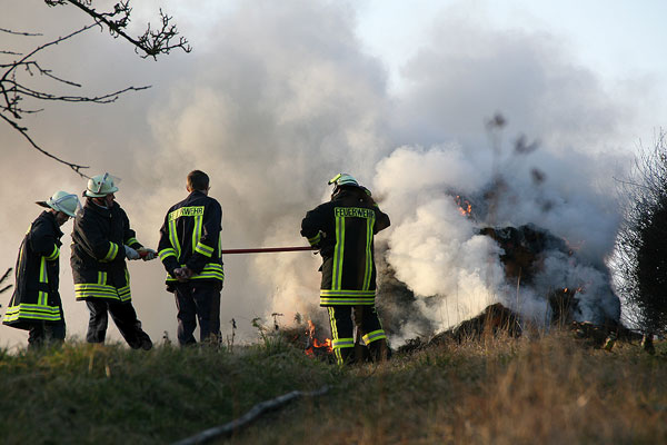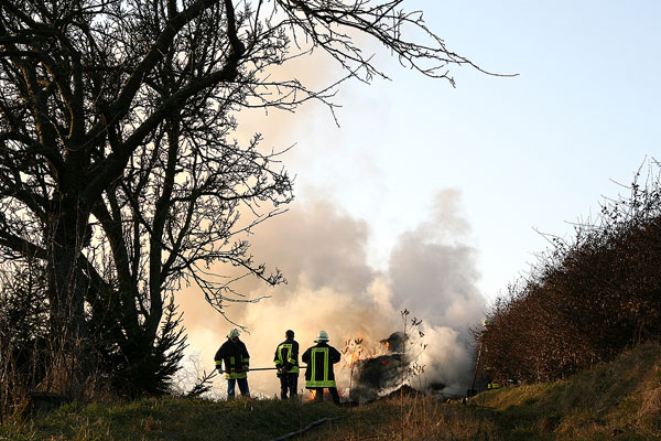 Dichter Rauch zog über den Ort – Heuhaufen brannte in Humes