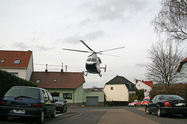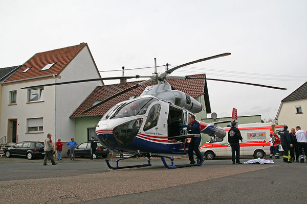 Der Weitertransport in eine Spezialklinik musste mit einem Rettungshubschrauber erfolgen. Doch da die Landung mitten auf einer Seitenstraße zwischenzeitlich zahlreiche Schaulustige angelockt hatte, mussten Einsatzkräfte des Löschbezirks Eppelborn den Patienten während des Umlagerns und der Vorbereitung auf den Transport mit Decken vor den Zuschauern abschirmen.
