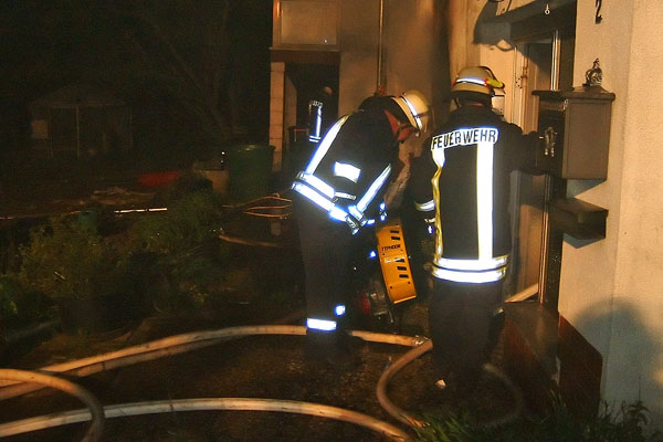 Unter dem Einsatz von drei C-Rohren gelang es schließlich, das Feuerwehr zu löschen. Brandreste musste aus dem Haus geräumt und immer wieder abgelöscht werden. Mit zwei Drucklüftern wurde das Gebäude entraucht. Um ein Wiederaufflammen des Brandes zu verhindern, blieb eine Fahrzeugbesatzung mit einem Löschfahrzeug zur Brandwache bis zum Morgen vor Ort.