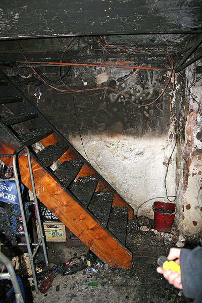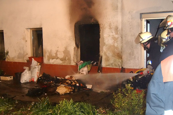 Der Brand hatte bis zum Eintreffen der Feuerwehr bereits auf weitere Kellerräume übergegriffen, eine Holztreppe zum Obergeschoss brannte. Das Feuer drohte bereits auf das Obergeschoss überzugreifen. Während sich die ersten Trupps unter Atemschutzgeräten durch den völlig verqualmten Keller bis zum Brandherd vorkämpften, durchsuchten andere Kräfte die Wohnräume im Ober- und Dachgeschoss sicherheitshalber nach weiteren Personen. Auch von aussen wurde durch das Kellerfenster versucht, den Brand unter Kontrolle zu bekommen.