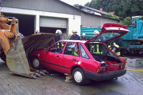 "Schwerer Verkehrsunfall mit Baumaschine. Mehrere Personen verletzt". So lautete die Übungsnachricht für die Einsatzkräfte des…