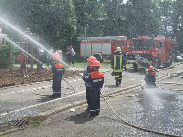 Am späten Nachmittag zeigte der Nachwuchs aus der Jugendfeuerwehr, bei einer Schauübung, sein Können und die 8-10 jährigen Kid´s begeisterten die Zuschauer.