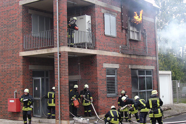 Im Juli hatten schon acht Eppelborner Wehrleute diesen Lehrgang besucht. Für 15 Feuerwehrleute aus dem Kreis Neunkirchen, sechs davon aus Eppelborn, bestand nun wieder die Möglichkeit, an diesem Sonderlehrgang „Brandbekämpfung“ an der Feuerwehrschule des Saarlandes in Saarbrückenteilzunehmen. Mit Kollegen und Kolleginnen aus Ottweiler und Illingen wurden zwei Gruppen gebildet, die jeweils von zwei Ausbildern der Feuerwehrschule betreut wurden. Während der Übungsszenarien stand den Teilnehmern dabei jeweils ein Trainer im Innenangriff sowie im Außenbereich zur Seite. Die speziell für dieses Seminar ausgebildeten Trainer hatten sieben Szenarien vorbereitet, die unter ihrer kritischen Betrachtung abgearbeitet werden mussten. Küchenbrand, Kellerbrand, Friteusenbrand, Lagerbrand und Angriff über Leiter und Menschenrettung waren nur einige Aufgaben, die zu bewältigen waren. In den Nachbesprechungen wurde jede Phase der Löscharbeiten analysiert, Tipps zur Verbesserung gegeben und positive Aspekte hervorgehoben. Wichtigstes Ziel: Das eigene Bewusstsein für sicheres Arbeiten steigern und die eigene Leistungsgrenzen im Atemschutzeinsatz kennen zu lernen. Am Brandhaus an der Landesfeuerwehrschule in Saarbrücken werden die Einsatzkräfte aus allen saarländischen Feuerwehren in der Brandbekämpfung geschult. Das Realbrand-Training in der Brandsimulationsanlage ergänzt dabei die theoretische und praktische Ausbildung auf Gemeinde-, Kreis- und Landesebene.