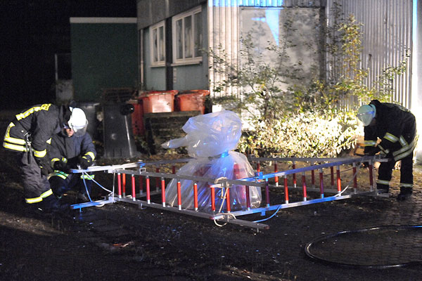 Nach Eintreffen der Einsatzkräfte wurde die Lage erkundet und Messungen durchgeführt. Die ausgetretene Flüssigkeit wurde von den Einsatzkräften unter Atemschutz aufgenommen und die Halle belüftet. Die Messungen zeigten, dass ausserhalb der Halle kein Ammoniak feststellbar war.