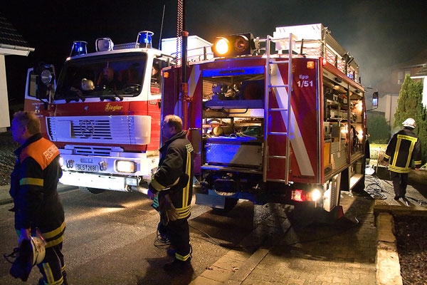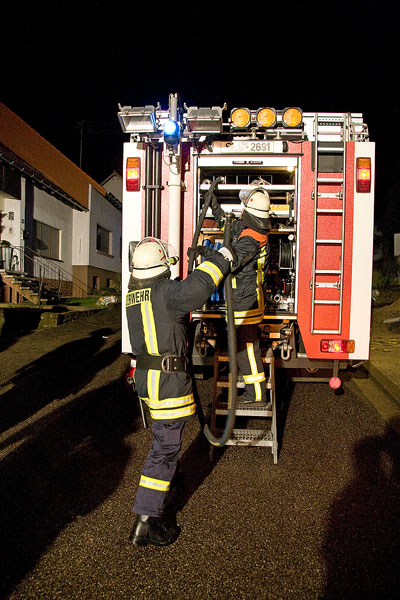Beim Betanken der Heizöllagertanks in einem Einfamilienhaus in der Ringstraße im Ortsteil Bubach-Calmesweiler ist am Abend des 22. Dezember 2008 eine größere Menge Heizöl ausgelaufen. Nachdem bereits rund 2000 Liter in die Tanks gefüllt waren, bemerkte der Fahrer des Tankwagens, dass die Füllleitung an einer Verbindungsstelle im Keller des Wohnhauses undicht geworden war. Geschätzte 200 Liter Heizöl waren ausgetreten und hatte sich in alle Kellerräume verteilt. Er stoppte sofort den Tankvorgang und verständigte die Feuerwehr. Als die gegen 18:16 Uhr alarmierte Feuerwehr aus dem Löschbezirk Bubach-Calmesweiler an der Einsatzstelle eintraf, hatte sich das Heizöl in fast sämtliche Kellerräume ausgebreitet. Zum Teil zentimeterhoch stand die rötliche Flüssigkeit und verbreitete einen intensiven Geruch, der bereits vor dem Anwesen wahrzunehmen war. Um das ausgetretene Heizöl abzupumpen, wurde aus Dillingen der "Rüstwagen Gefahrgut" (RW-G) nachalarmiert. Dieses Fahrzeug verfügt über spezielle Werkzeuge und Gerätschaften für den Gefahrguteinsatz. Zu dieser Beladung gehören auch eine Spezialpumpe und mineralölbeständige Schläuche, mit denen ein Großteil des Öls abgesaugt und in ein Edelstahlgefäß gepumpt werden konnte. Danach wurden noch verbliebene Restmengen mit Ölbindemitteln aufgenommen. Zur Stromversorgung der Pumpe und zum Transport von Bindemitteln war auch der Löschbezirk Eppelborn mit dem Rüstwagen im Einsatz. Die Arbeiten der Feuerwehr dauerten rund vier Stunden. Die Kellerräume müssen jetzt von einer Fachfirma saniert werden. Durch die notwendigen Arbeiten und die Entsorgung der kontaminierten Gegenstände dürfte ein hoher Sachschaden enstanden sein.