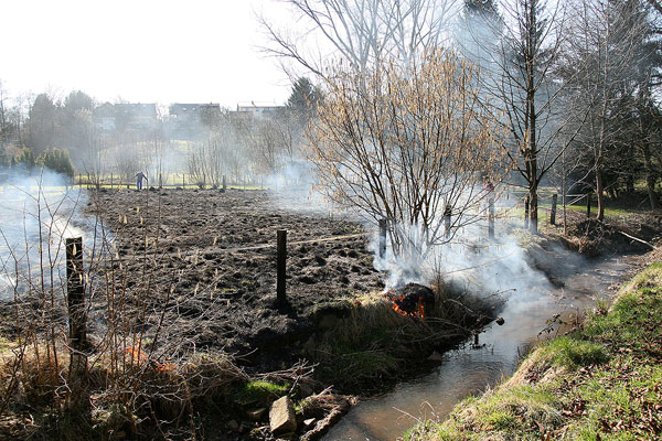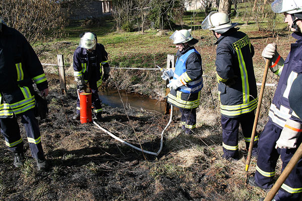 Zu einem Flächenbrand mussten die Männer und Frauen des Löschbezirks Wiesbach am Nachmittag des 19. März 2009 ausrücken. Dort war auf einem rückwärtigen Grundstück beim Verbrennen von Grünschnittabfällen ein Feuer ausser Kontrolle geraten und hatte auf die trockene Wiese übergegriffen.