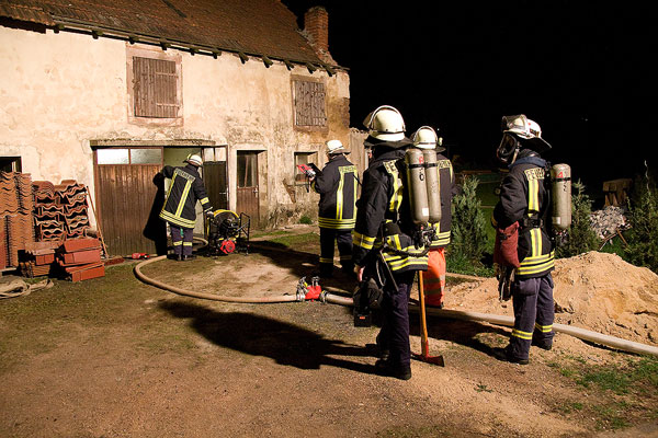 Kurz nach Mitternacht bemerkten Anwohner eines Hauses am Brunnenplatz in Bubach-Calmesweiler intensiven Brandgeruch. Doch ein Feuer konnten sie nirgends entdecken. Vielmehr schien der Rauch aus einem Nachbargebäude durch das Mauerwerk ihres Hauses zu dringen. Da sie der Situation nicht trauten, riefen sie die Feuerwehr.
