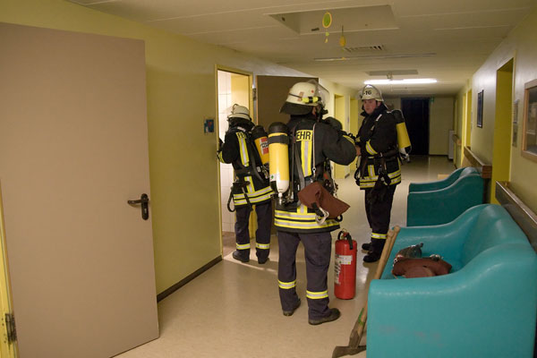 Offenbar durch einen technischen Defekt an einer Spülmaschine, mit der Urinflaschen gereinigt werden, hatte austretender Rauch die automatischen Rauchmelder ausgelöst und gegen 03:24 Uhr die Feuerwehr alarmiert.