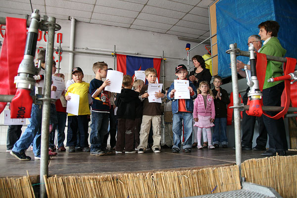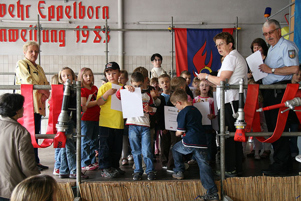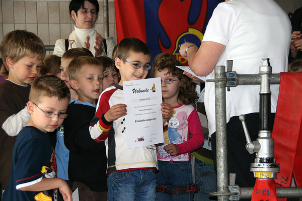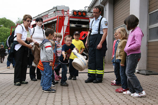 "Die Feuerwehr kommt!". Als das Team um Löschbezirksführer Felix Becker zur diesjährigen Brandschutzerziehung im April in den Kindergarten St. Josef in Eppelborn kam, waren die Kinder in heller Aufregung. In den Tagen zuvor hatten die Kinder mit ihren Betreuerinnen bereits viel über das Thema Feuerwehr gesprochen, um sie auf den Besuch vorzubereiten. Auch in diesem Jahr wollten die Feuerwehrleute mit den ABC-Kindern, also den Kindern, die nach den Sommerferien in die Grundschule kommen, über das Thema Feuer reden. Denn wo zuhause die Streichhölzer versteckt sind, wissen selbst die Jüngsten. Deshalb lernten die Kinder, dass es sehr gefährlich ist, mit Feuer zu spielen. Kindgerecht wurden ihnen auch erzählt, warum Feuer so gefährlich ist und wie man sich richtig verhält, wenn doch mal ein Brand ausbricht. Löschbezirksführer Becker und seine Helfer sprachen dabei über die Notrufnummer 112 und was man dem Disponenten alles erzählen muss, damit die Feuerwehr weiss, wo es brennt. Ganz besonders spannend wurde es, als es galt, einen Feuerwehrmann für den Einsatz anzuziehen. Dabei lernten die Kinder, dass man keine Angst haben muss, auch wenn die mit Atemschutzgeräten ausgerüsteten Feuerwehrleute aussehen wie Weltraumfahrer. [left][cmsimg]2595[/cmsimg][/left] Da die Feuerwehrfahrzeuge natürlich viel zu groß sind, um sie mit in den Kindergarten zu bringen, hatte der Löschbezirk Eppelborn die Kinder gemeinsam mit ihren Eltern zur Feuerwehr eingeladen. Dort konnten sie sich die Geräte, die viele bisher nur aus Bilderbüchern kannten, einmal in der Realität ansehen. Und bei der Jugendfeuerwehr konnte mit einem Strahlrohr auf ein Feuer gespritzt werden. Löschbezirksführer Felix Becker überreichte den Kindern eine Urkunde zum "Kinderbrandmeister" als Erinnerung an ihren Besuche bei der Feuerwehr. Die Kinder dankten den Helfern mit einem Feuerwehrlied, bevor sie die Übung der Jugendfeuerwehr bestaunen konnten.