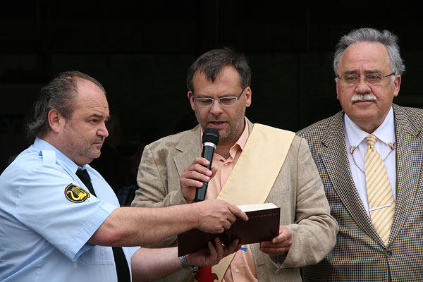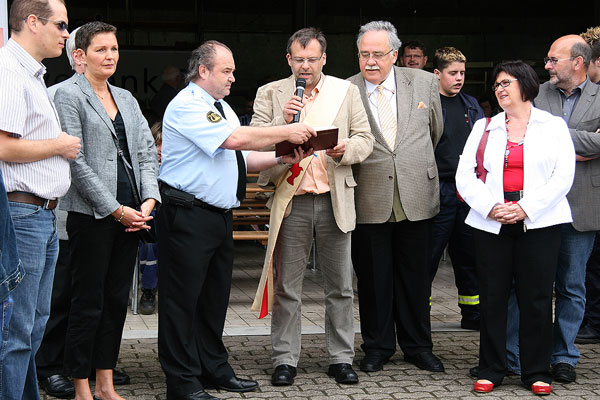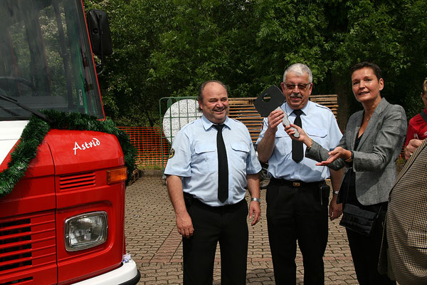 Der Förderverein der Feuerwehr Eppelborn hatte im vorigen Jahr ein Fahrzeug der Bereitschaftspolizei ersteigert. Das Fahrzeug war bis dahin als Lautsprecherwagen im Einsatz und ca. 24 Jahre alt. Die Mitglieder des Fördervereins haben das Fahrzeug in ihrer Freizeit für die Zwecke der Feuerwehr als Mannschaftstransportfahrzeug (MTF) und Einsatzleitfahrzeug umgebaut. Pünktlich zur Feier des "Tages der offenen Tür" im Feuerwehrgerätehaus Eppelborn konnte das Fahrzeug fertig lackiert und einsatzbereit vorgestellt und dem Löschbezirk Eppelborn übergeben weden. Die Segensworte sprach Diakon Hans-Peter Schild. Die Ehefrau des Ministerpräsidenten Astrid Gerke-Müller taufte das Fahrzeug auf den Namen "Astrid". Das bisherige Mannschaftstransportfahrzeug ist abgemeldet und soll verkauft werden, erläuterte Felix Becker, Löschbezirksführer des Löschbezirks Eppelborn. Das neue Fahrzeug wird die Feuerwehr Eppelborn bei größeren Einsätzen durch den Transport von Feuerwehrleuten und bei der Einsatzkoordination vor Ort ideal ergänzen. Bürgermeister Fritz-Hermann Lutz hat für den Umbau des Polizeifahrzeugs zum Feuerwehrmannschaftstransporters 2.500€ aus dem Gemeindehaushalt zur Verfügung gestellt.