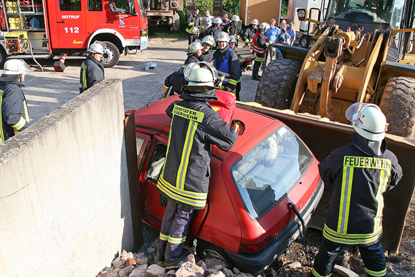 Bagger gegen Pkw – Löschbezirk Eppelborn übte die Rettung eingeklemmter Personen