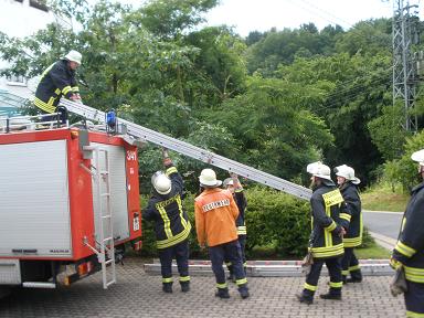 Am vergangenen Samstag übten wir den richtigen Umgang mit Leitern. Übungsleiter waren Guido Kuhn und Stephan Blum. Eine Leiter ist im Brandfall der zweite Rettungsweg für die Bevölkerung und unser Fluchtweg im Ernstfall. In zwei Gruppen wurden zum einen die Steckleitern und zum anderen die 3-teilige Schiebeleiter eingesetzt. Aufgrund der Höhe des Gebäudes wurde schnell klar, dass wir in solchen Höhen nicht mehr mit unseren Steckleitern, sondern mit der Schiebleiter arbeiten müssen. Man hat gesehen, dass dies eine große Herausforderung bietet. Ein Dankeschön möchten wir Kuno Sauer und seiner Frau für die Bereitstellung des Übungsgeländes aussprechen. Zum Abschluss wusste man natürlich, wie die Feuerwehr kleine Brände löscht und genoss die Abendsonne bei einem kühlen Getränk. Vielen Dank!