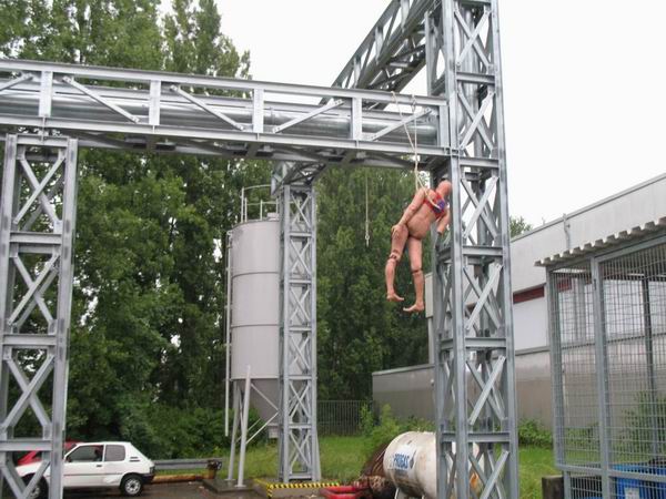 Zwischenzeitlich bereitete die Besatzung des zweiten Fahrzeuges das Rettungsgerät „Rollgliss“ zur sicheren Rettung des Verunglückten vor. Da der betroffene Arbeiter ein vorschriftsmäßiges Sicherungsgeschirr angelegt hatte, konnte das „Rollgliss“ problemlos daran angeschlagen und der Verunglückte aus seiner misslichen Lage befreit und zu Boden gelassen werden. Die gerettete Person wurde anschließend dem Rettungsdienst übergeben.