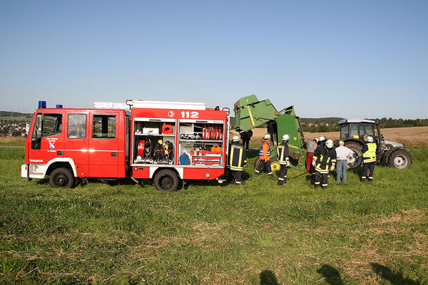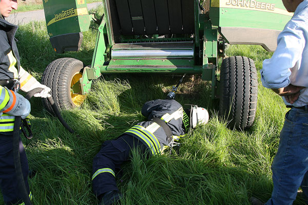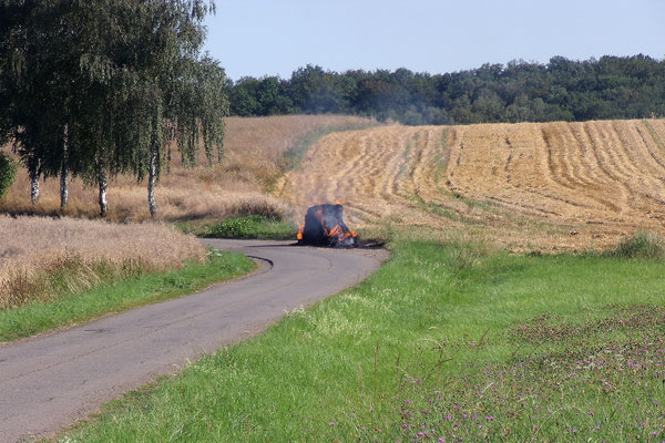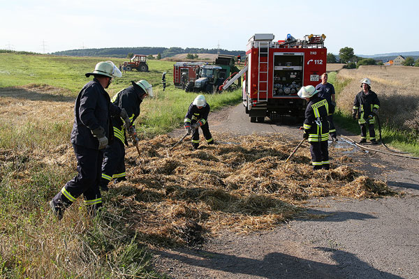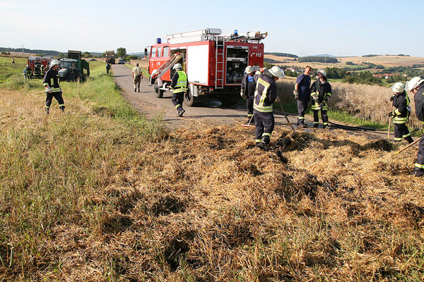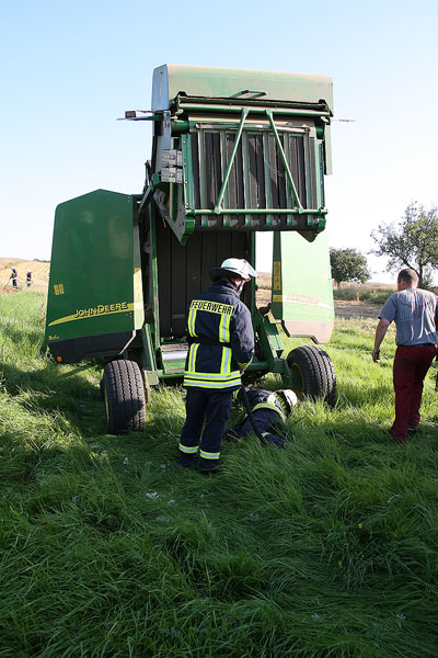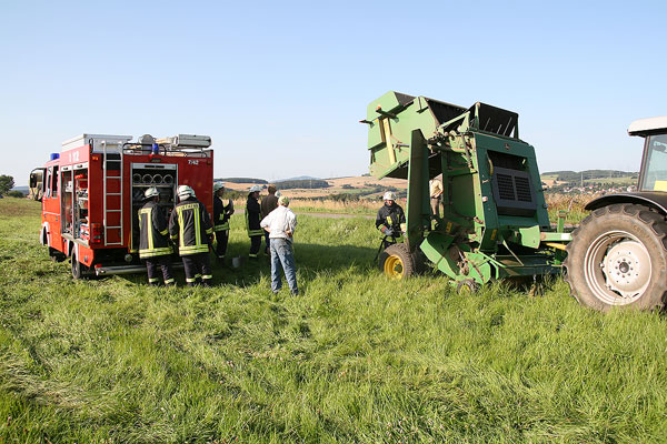 Während der Arbeiten auf seinem Feld bemerkte ein Bauer in Mangelhausen am Abend des 01. August 2009 eine starke Rauchentwicklung aus einer Arbeitsmaschine, mit der er Stroh zu Rundballen presste. Die Maschine war scheinbar heißgelaufen und hatte den Ballen, der gerade in der Maschine gepresst wurde, entzündet.