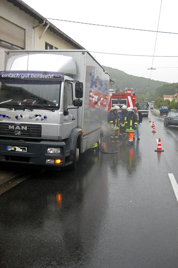 Gegen 13:38 Uhr wurden die Löschbezirke Eppelborn und Bubach-Calmesweiler zu einem Lkw-Brand in die Dirminger Straße im Ortsteil Eppelborn gerufen. Dort war ein Lkw liegengeblieben, nachdem der Fahrer eine starke Rauchentwicklung im Bereich der Hinterachse seines Fahrzeuges bemerkt und die Feuerwehr alamiert hatte. Ursache für die starke Rauchentwicklung war eine Überhitzung der Bremsanlage und des Antriebsstranges an der Hinterachse der Lkw. Mit der Schnellangriffseinrichtung des Tanklöschfahrzeugs wurde die Hinterachse abgelöscht und gekühlt. Eine Ausbreiten des Brandes konnte durch das schnelle Eingreifen verhindert werden. Da auch geringe Mengen Schmierstoffe ausgetreten und durch den Regen in die Kanalisation gelang waren, wurde vorsorglich die Kläranlage informiert. Der Einsatz war nach rund einer Stunde für die Feuerwehr, die mit zwei Fahrzeugen und 14 Einsatzkräften vor Ort war, beendet.