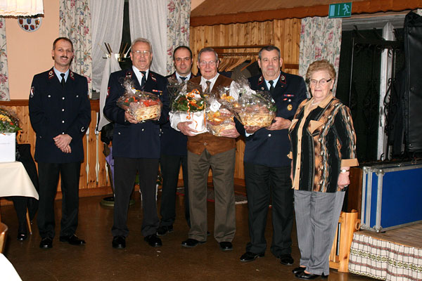 Für 35-jährigen aktiven Dienst in der Freiwilligen Feuerwehr Dirmingen ehrten wir Uwe Schulz und für 40-Jahre aktiven Dienstin der Feuerwehr Guido Kuhn. Für 60 Jahre Mitgliedschaft in der Freiwilligen Feuerwehr Dirmingen ehrte Löschbezirksführer Detzler den Alterswehrkameraden Robert Hinsberger. Für Ihr "Lebenswerk" an der Feldküche wurden Günther Braun und Werner Krass geehrt. Nach jahrelangen Diensten "gaben die beiden den Löffel offiziell ab".