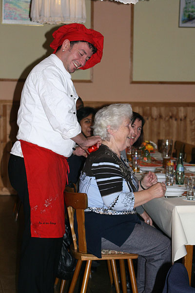 Anschließend wurde das Buffet eröffnet. Man konnte sich hier noch einmal für das nachfolgende Programm kräftigen. Showmaster Uwe Schulz sowie das Moderatorengespann Claudia Schulz und Thorsten Fuchs präsentierten Bilder und Geschichten aus dem vergangen Jahr und einen Ausblick in 2010. Stephan Blum alias "Stephan Lagerfeld" präsentierte die neue Kollektion für 2010 und erhielt mit seinen Modells tosenden Applaus und sogar die Rufe nach Zugabe auf sich. Nicht zu vergessen ein Fußballspiel der besonderen Art, Live aus dem Mühlbacher Hof. Und natürlich durfte ein Strandbesuch mit Sangria aus Eimern nicht fehlen.
