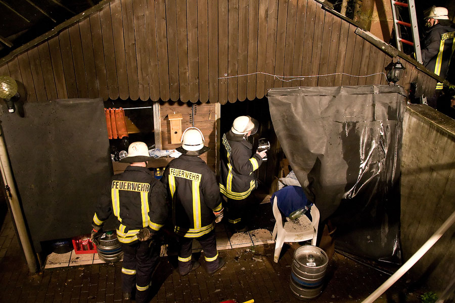 Der Eigentümer versuchte sofort, mit einem Gartenschlauch die Flammen, die bereits aus dem Dach der Hütte schlugen, zu bekämpfen. Gleichzeitig wurde gegen 03:02 Uhr auch die Feuerwehr aus dem Löschbezirk Wiesbach alarmiert.