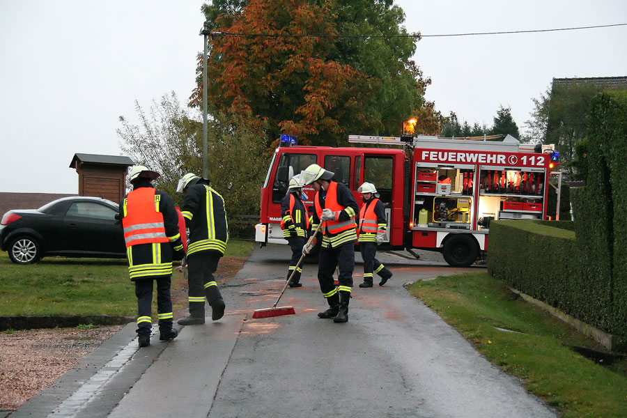 Ein Ölfilm auf der Fahrbahn der Verbindungsstraße zwischen Blumenweg und der Straße "Zur Steinrausche" im…