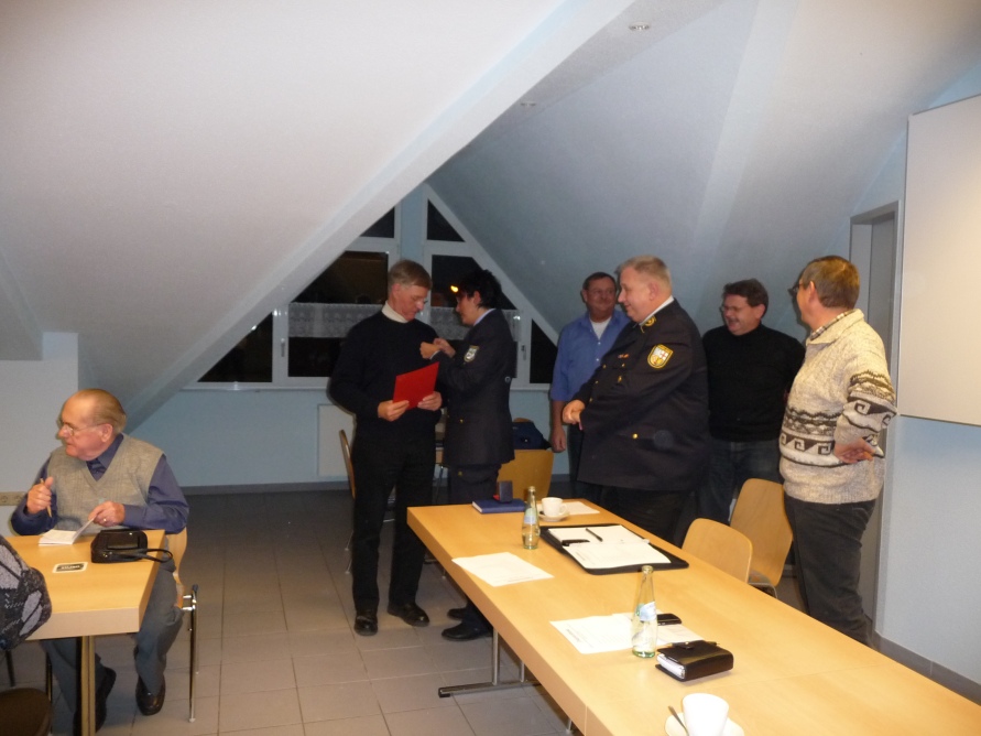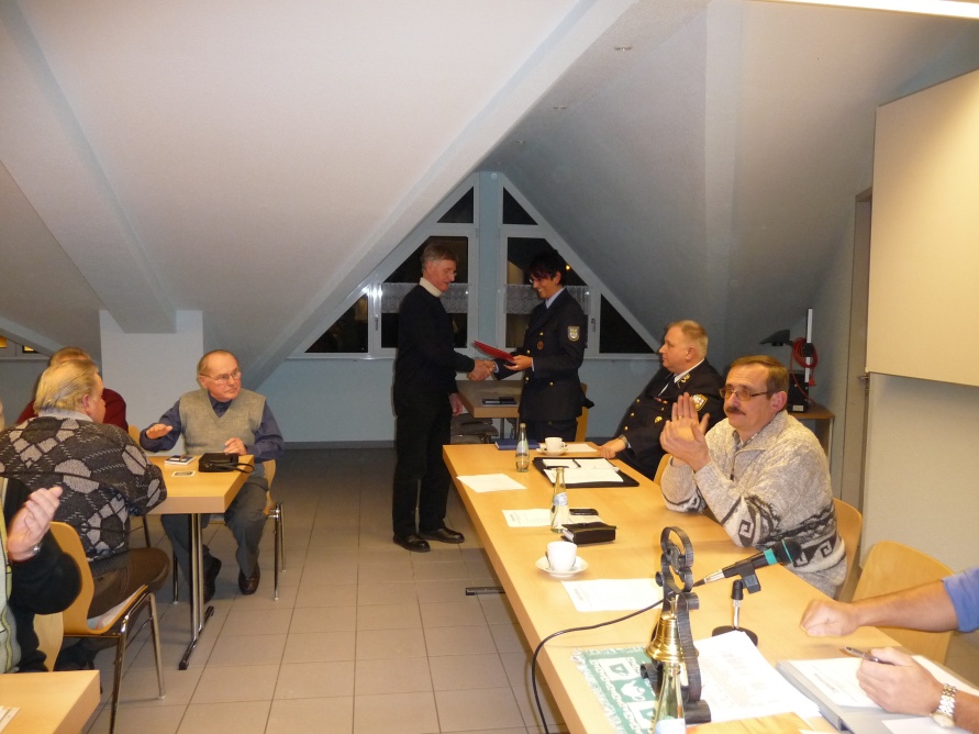 Frau Christine Schäfer, die zweite Vorsitzende des Kreisfeuerwehrverbandes Neunkirchen konnte Alfred Bethscheider für 50jährige Mitgliedschaft in der Freiwilligen Feuerwehr Eppelborn, Löschbezirk Wiesbach, eine Urkunde und das goldene Ehrenzeichen des Landesfeuerwehrverbandes überreichen.