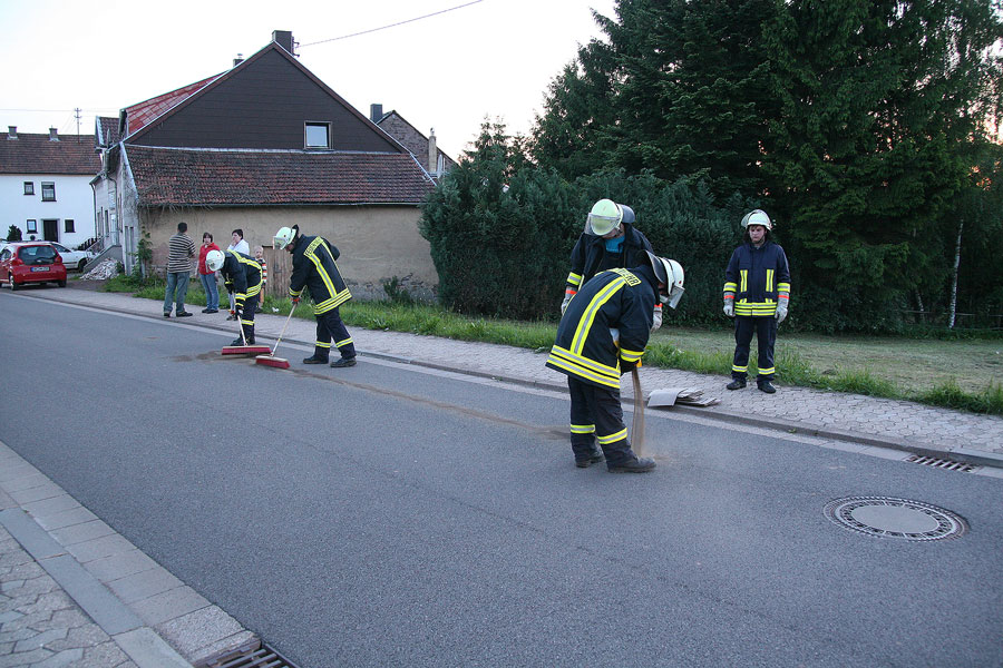 Weil ein Fahrzeug durch einen technischen Defekt Kraftstoff verlor und eine Benzinspur auf der Fahrbahn hinterließ, musste am Abend des 05. Juni 2010 die Feuerwehr in die Steinackerstraße nach Humes ausrücken.